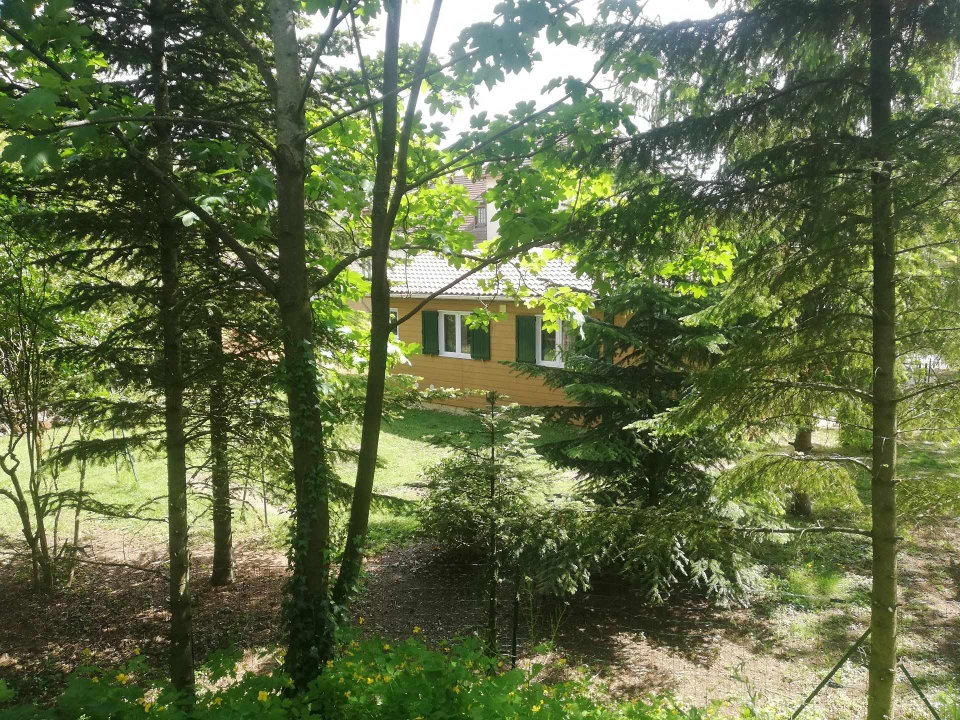 Un village de chalets dans un parc résidentiel, sécurisé, dans un environnement vivifiant (planté de conifères).